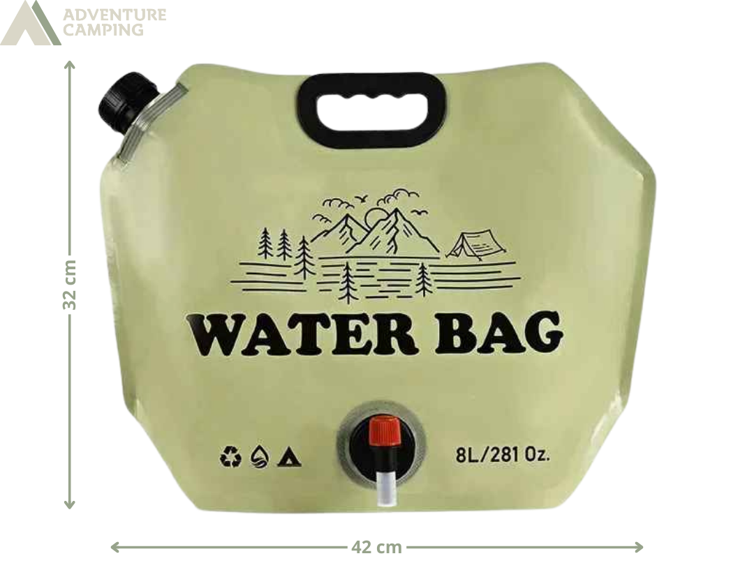 Fabricado em material PEVA resistente e seguro, o reservatório é leve, durável e ideal para uso em ambientes externos. Sua grande capacidade de 8 litros garante autonomia para hidratação, preparo de alimentos e limpeza em acampamentos ou locais sem acesso fácil à água.